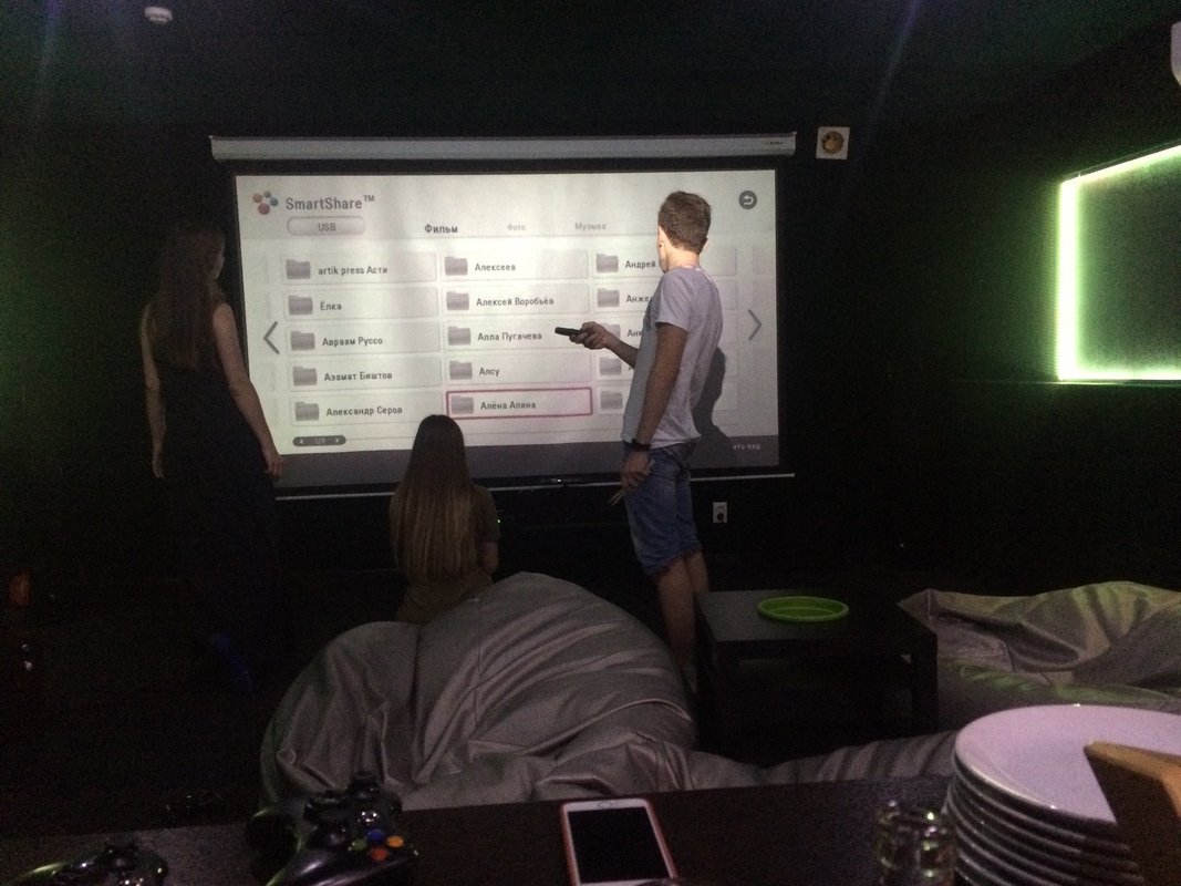 Когда приехали отмечать, то вдруг оказалось, что меня дезинформировали и стоимость будет 1000 в час. За эти деньги я могла бы арендовать зал в анти кафе получше, остановилась на этом именно из-за стоимости. Но так как бронировать надо заранее и возможности пойти в другое место уже не было, пришлось платить. В качестве компенсации предложили зал побольше, но там было только караоке хорошего качества, а в малом - домашнее караоке, фильмы, х-бокс и возможность поставить свою флешку. Мы выбрали средний зал - из-за размера и качества звука, сказали, что там 55000 песен, но какой-то тупой поиск, плюс нет многих известных песен.